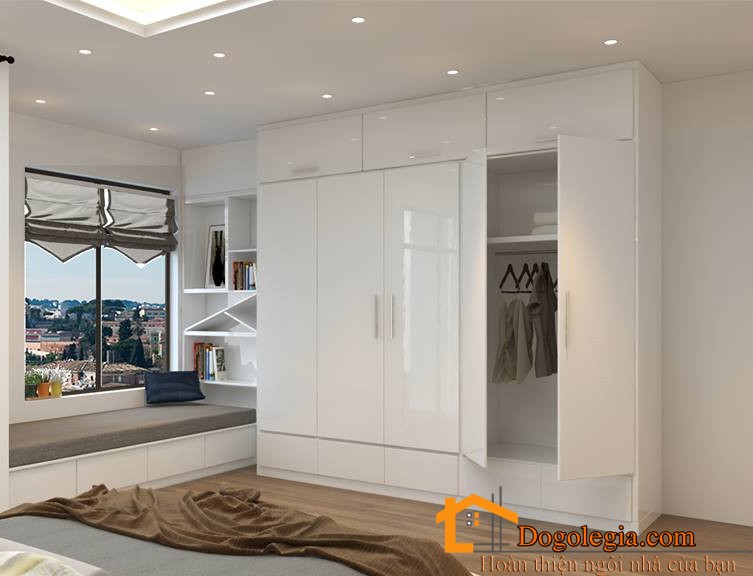 Có thể bạn đang muốn mua chiếc tủ quần áo gỗ công nghiệp cho phòng ngủ nhưng chưa biết chọn kiểu nào, thì hãy ngắm nhìn mẫu tủ quần áo vừa hiện đại lại tiện nghi này xem. Tủ thiết kế khác so với truyền thống, cao kịch trần tối đa không gian bên trên, giúp bạn lưu trữ chăn gối mùa đông rất gọn gàng bên trong chiếc tủ. Hơn nữa tủ làm bằng chất liệu gỗ công nghiệp cao cấp được phủ bên ngoài lớp sơn trắng khiến cho phòng của bạn rộng rãi hơn. Chỉ một chút sáng tạo với gam màu nâu trên cánh tủ tạo điểm nhấn thú vị cho chiếc tủ quần áo.